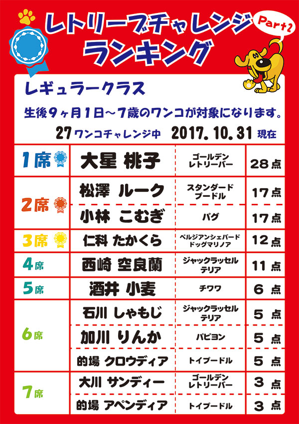 ※HPランキング表は前週日曜日までの記録を毎週火曜日に更新しております。
